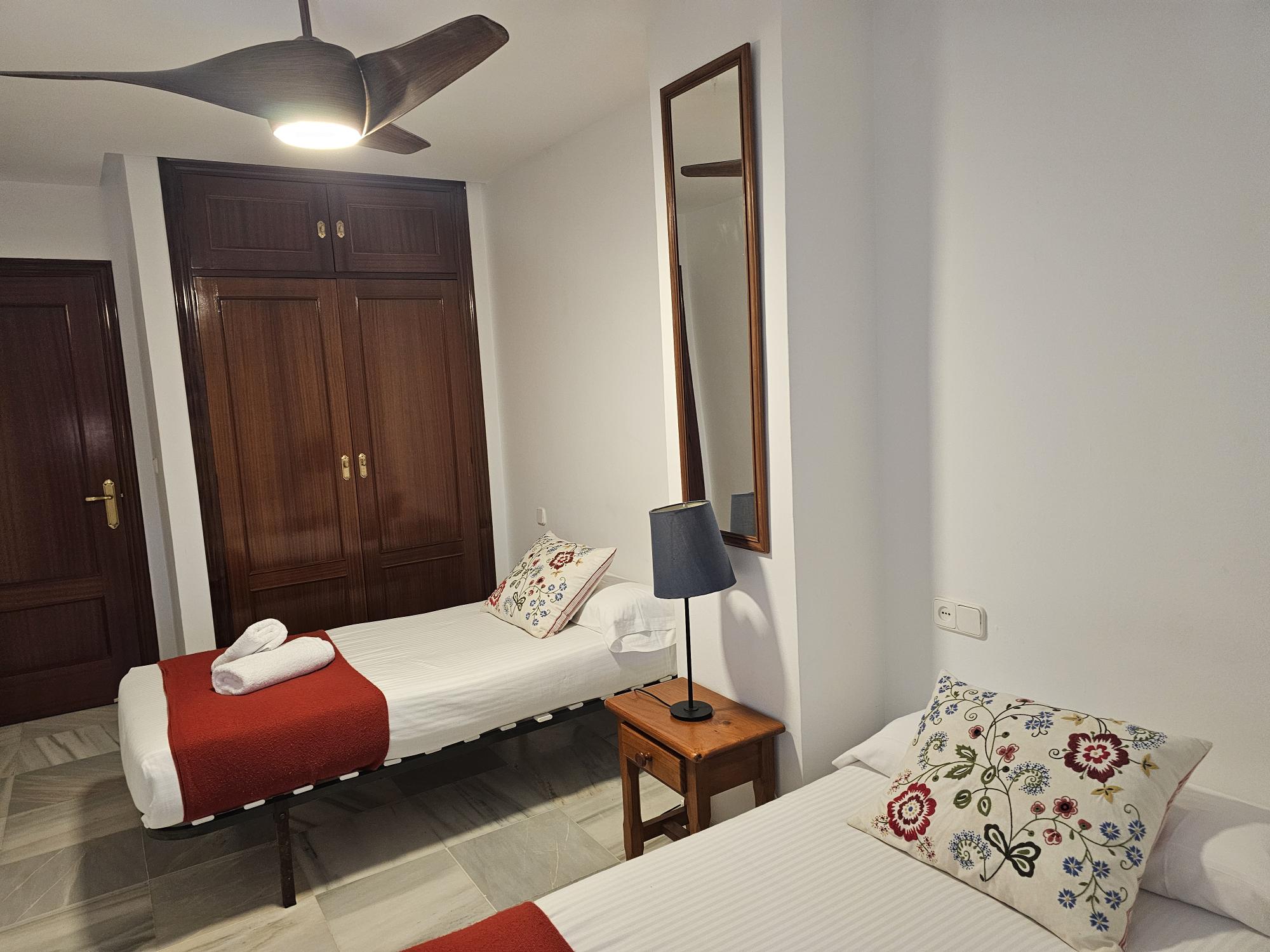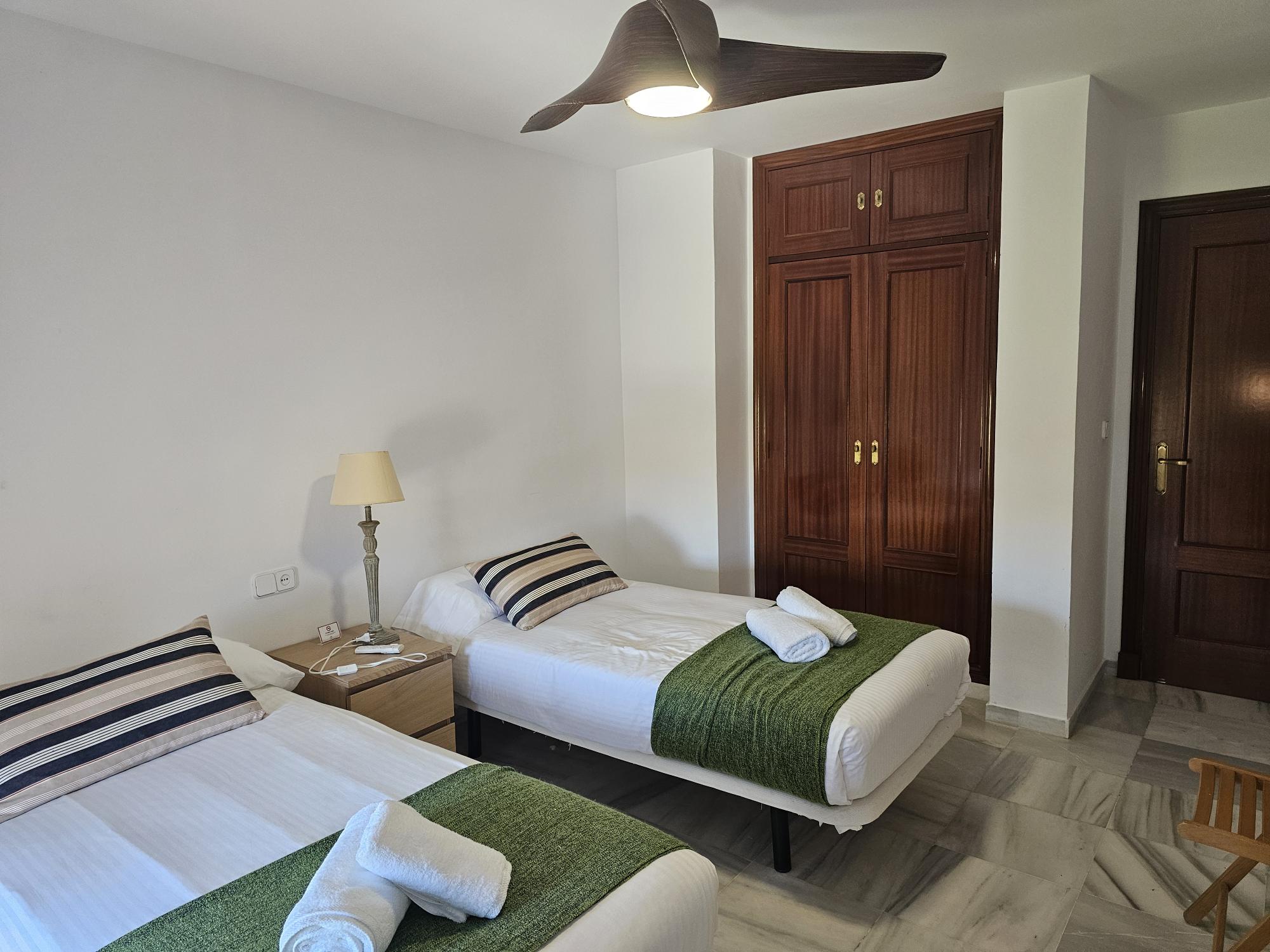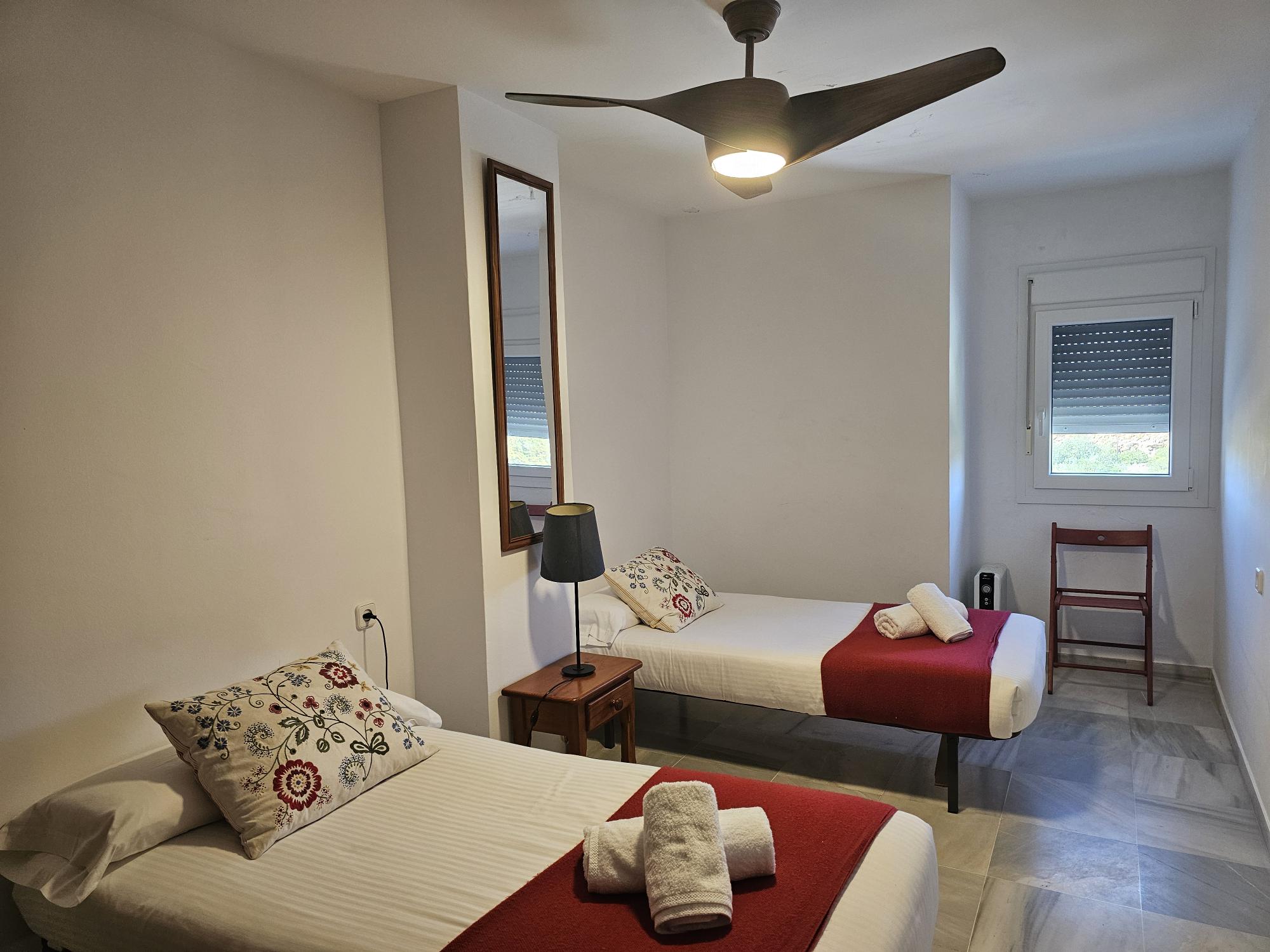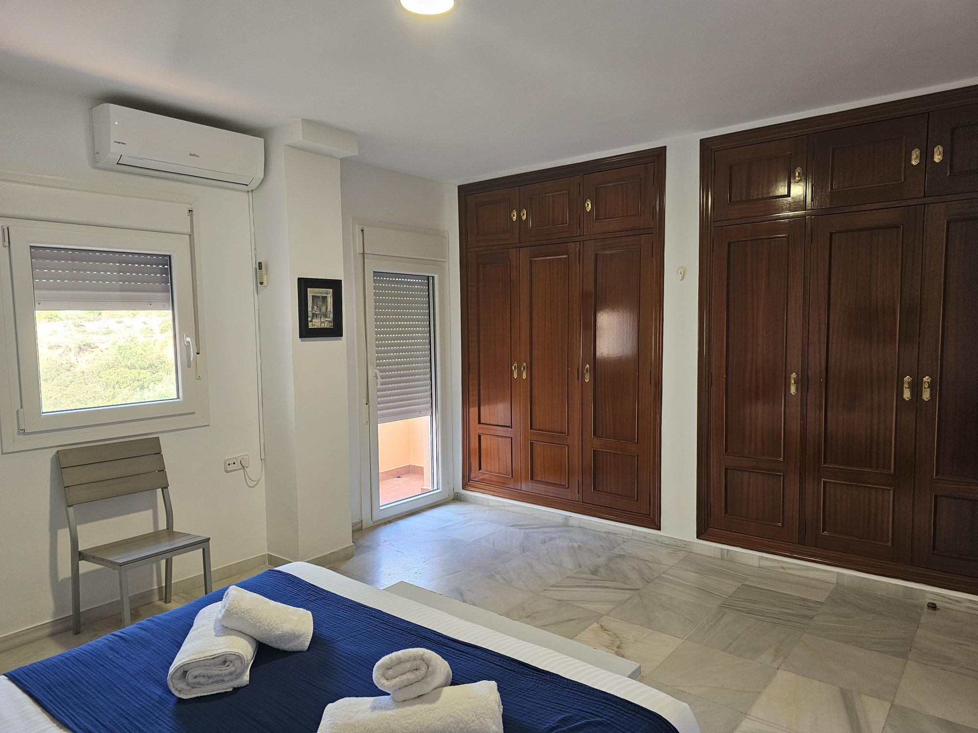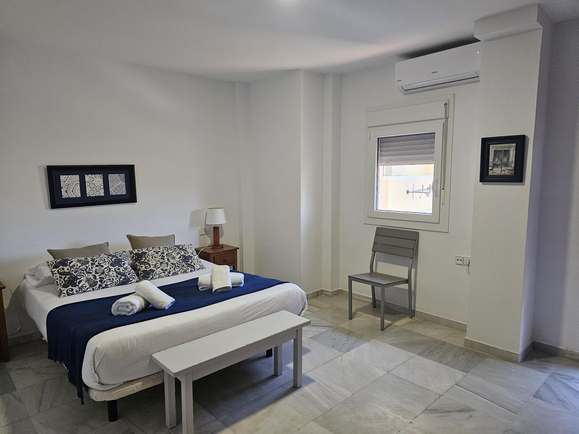 El apartamento tiene aire acondicionado en el salón y en el dormitorio principal.